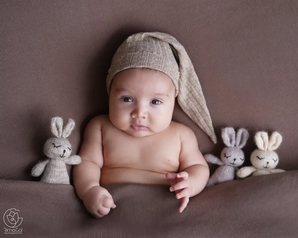 برای رسیدن به این حالت، توصیه میشود شیر دادن یا تعویض پوشک را درست قبل از شروع عکاسی انجام دهید.